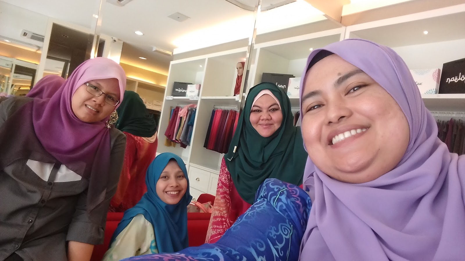 Sempat lagi kami dok berwefie kat depan kedai... Kedai Neelofar ni bersih n wangi.. toilet pun cantik.. memang manjaga kebersihan.. pelanggan pun senang nak cari tudung sebab tersusun je..